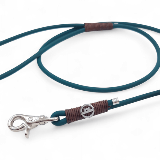 BioThane-Cityleine Dunkelgrün/Vintage Cognac dunkel - für kleinere Hunde (Sofortkauf)