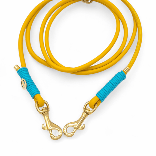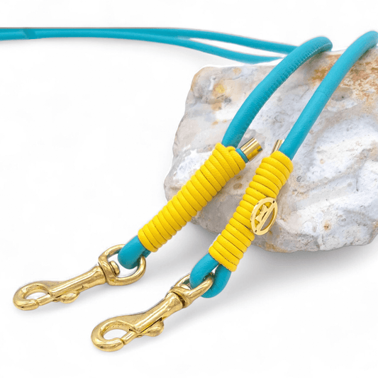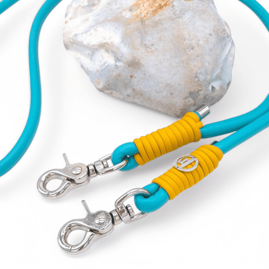 Lederleine Türkis/Sonnengelb - für kleine Hunde (Sofortkauf)