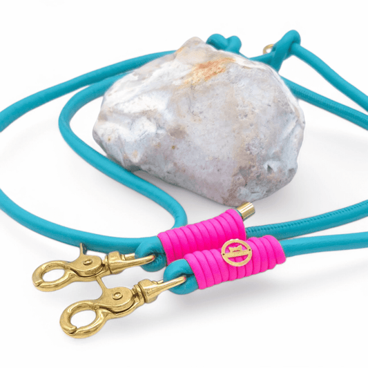 Lederleine Türkis/Neon-Pink (Sofortkauf)