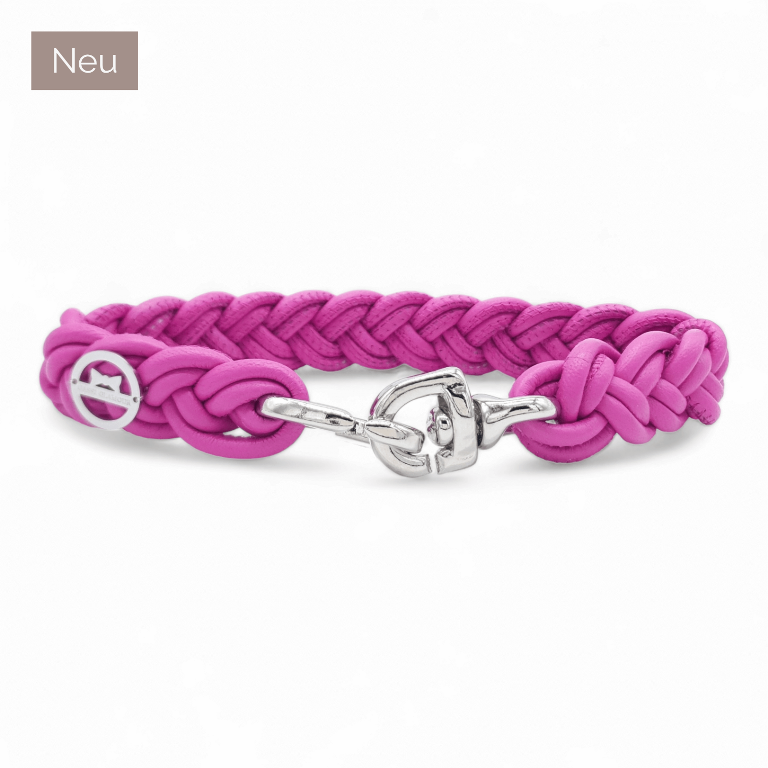 - Wir versuchen die Enden der Bänder bestmöglich in der Flechtung zu verstecken – es ist aber nicht auszuschließen, dass sie auf der Halsbandunterseite sichtbar sind.