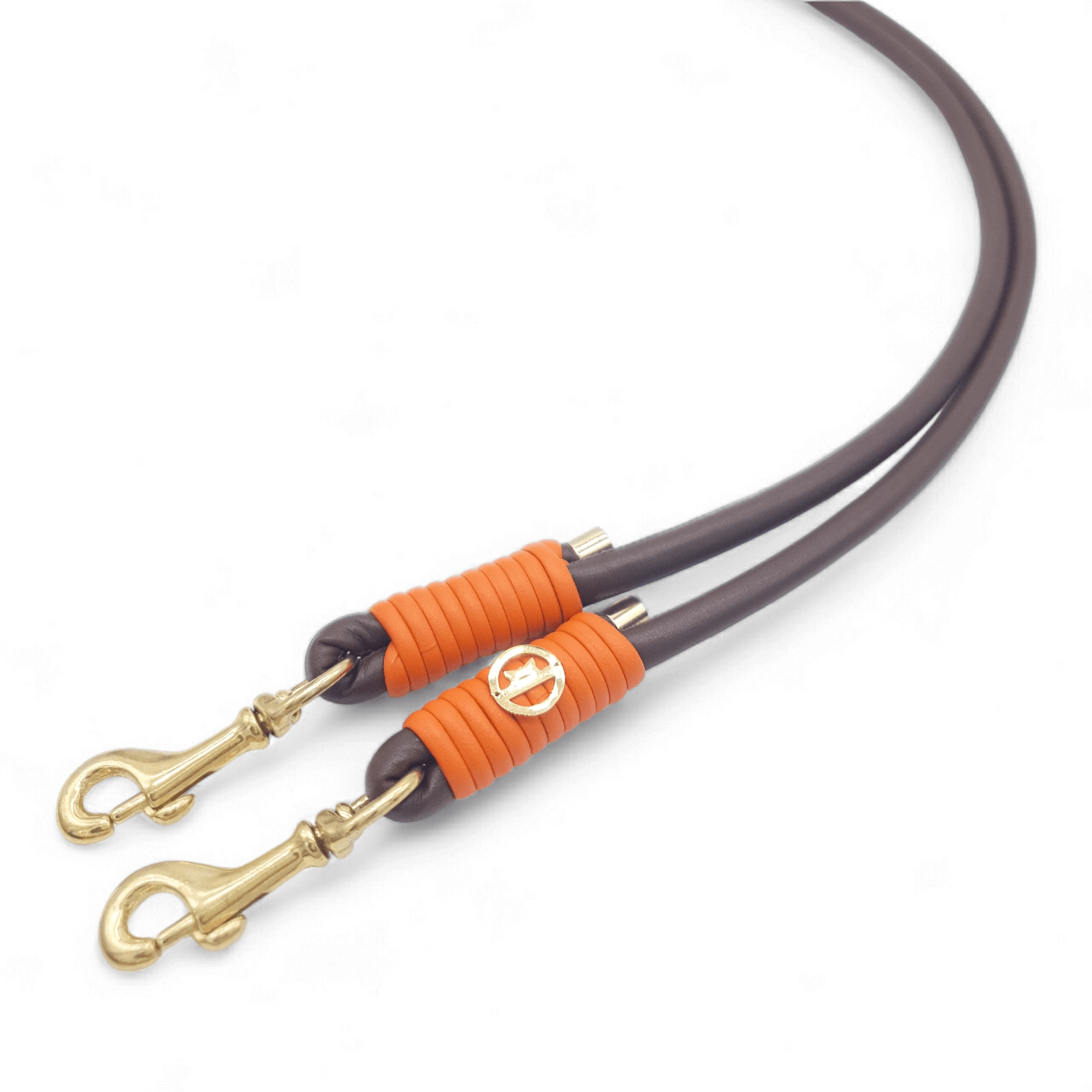 Feinstes, italienisches Nappaleder in 'Schokobraun' mit 'Orange' Akzenten.